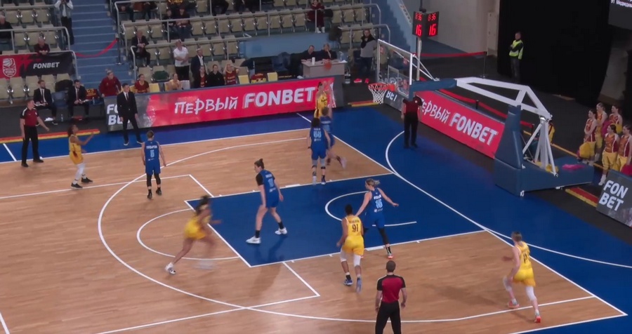Курский квартет бомбардиров сегодня таков: Голдырева — 15, Ольга Фролкина — 13, Киара Линскенс — 10+14 подборов, Джойлин Браун — 10.