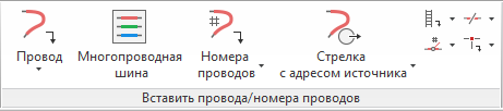 Инструменты для построения соединений между компонентами AutoCAD Electrical расположены на панели Вставить провода / номера проводов вкладки «Схема».