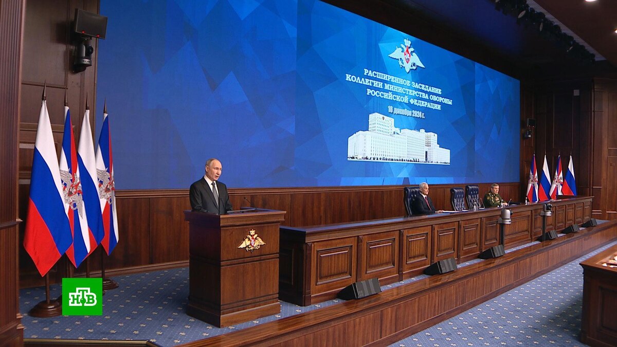 [ Смотреть видео на сайте НТВ ] Сегодня в Москве прозвучали важные заявления о ходе СВО, противостоянии России и Запада и работах по совершенствованию российского оружия сдерживания. Владимир Путин провел заседание коллегии министерства обороны. Президент заявил, что благодаря героизму бойцов и поддержке всей страны российские подразделения захватили стратегическую инициативу в зоне СВО. Запад намерен и дальше обострять отношения с Москвой, используя для этого киевский режим, но России есть чем ответить. Президент сразу начал с результата, который удалось достигнуть сообща. По его словам, за этот год российская армия освободила 189 населенных пунктов. Владимир Путин, президент РФ: «Уходящий год стал знаковым в достижении целей специальной военной операции. Благодаря профессионализму и мужеству наших воинов, героическому труду работников оборонных предприятий и поистине всенародной поддержке армии и флота российские войска прочно владеют стратегической инициативой на всей линии боевого