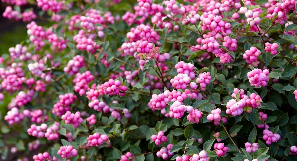 Снежноягодник, известный также как волчья ягода, принадлежит к семейству жимолостных. Этот листопадный кустарник вырастает от 20 см до 2 м в высоту. Его главная декоративная особенность — плотные гроздья ягод, которые сохраняются на ветвях зимой. Цвет ягод варьируется от белого до розового и пурпурного. Листья овальной формы летом имеют насыщенно-зелёный оттенок, а осенью приобретают желтоватый окрас.