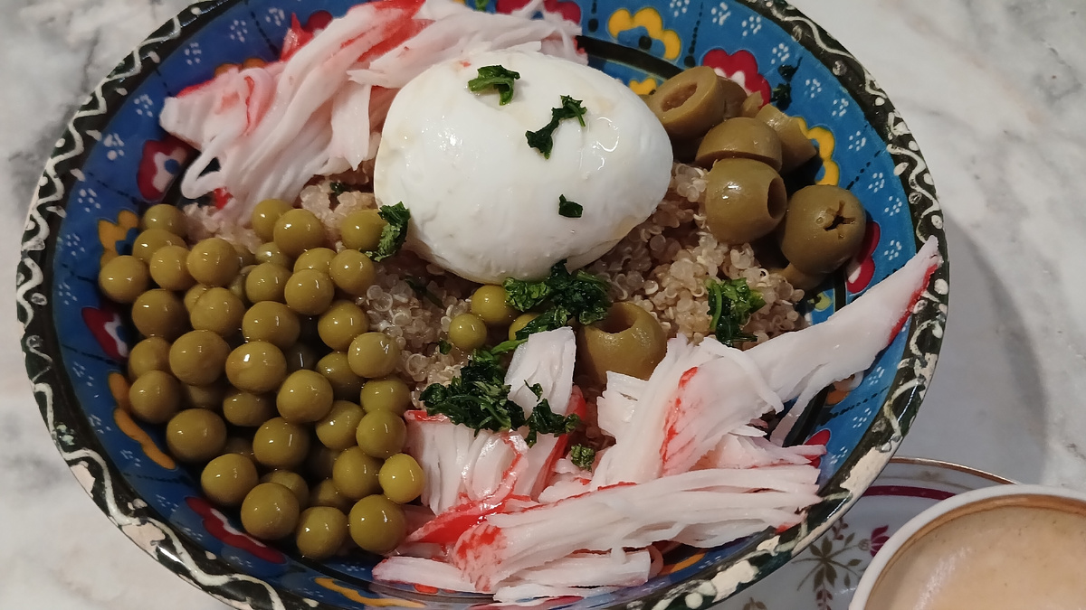Сегодня - среда, и в среду у нас обычно на завтрак боул. За основу взяла киноа, добавила вареное яйцо, зеленый горошек, снежного краба, оливки, заправила кунжутным маслом и присыпала кинзой А к кофе - яблочная белевская пастила Муж сейчас в отпуске. Сварил борщ на обед. Борщ из банки, заготовка с лета. Без картошки. А вместо нее - красная чечевица. Такой вроде и борщ, а вроде и не борщ получился. Но вкусно и сытно 👍 После обеда чашечка кофе, бутерброд с сыром и кусочек белевской пастилы В обед мы с мужем во Владимир уехали. Нам с собой и сыну на ужин напекла мясных вафель. Нам заворачивала их в лаваш, чтобы есть было удобно и руки были чистыми. Пока ехали, по дороге времени не теряла - сделала заказ из Дикси с доставкой. Сын дома встретил. С собой еще брала в термокружке лимонно-имбирный чай 👍 Вечером, как приехали, я варенец ела. А муж рис с овощами с мясными вафлями. Меню год назад