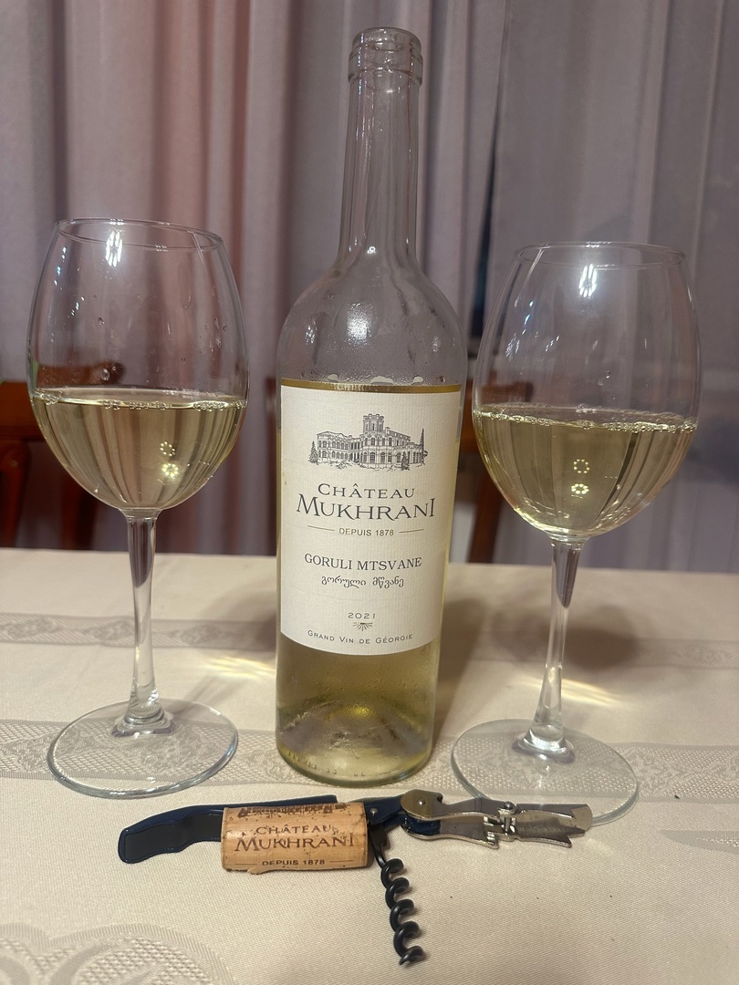 Говоря о грузинском вине, всегда делаю акцент на том, что есть как минимум три вида грузинского вина, которые очень сильно отличаются друг от друга. Первое- так называемое домашнее вино, которым потчуют на рынках, экскурсиях, им завалены многие магазинчики. Пить такое вино не то что не приятно, местами опасно из-за откровенных проблем с микробиологией. Второе- есть вина непонятно как и каким образом попавшие на российские полки в эконом сегменте, вина которых нет в самой Грузии на полках.. Третье- вина сделанные умело, с соблюдением технологий и на хорошем оборудовании. Как пример, вино которое дегустировали с сыном в субботу: Chateau Mukhrani, Goruli Mtsvane 2021. Что подкупило? Необычный и достаточно редкий сорт винограда. Не типичный для Грузии дизайн этикетки с намёком на Францию.Всё становится понятно, когда узнаёшь, что главный винодел компании — Патрик Хенеф, имеет богатый опыт работы во Франции, в регионе Бордо. Сама компания работает с 2008 года. Это международный проект груз