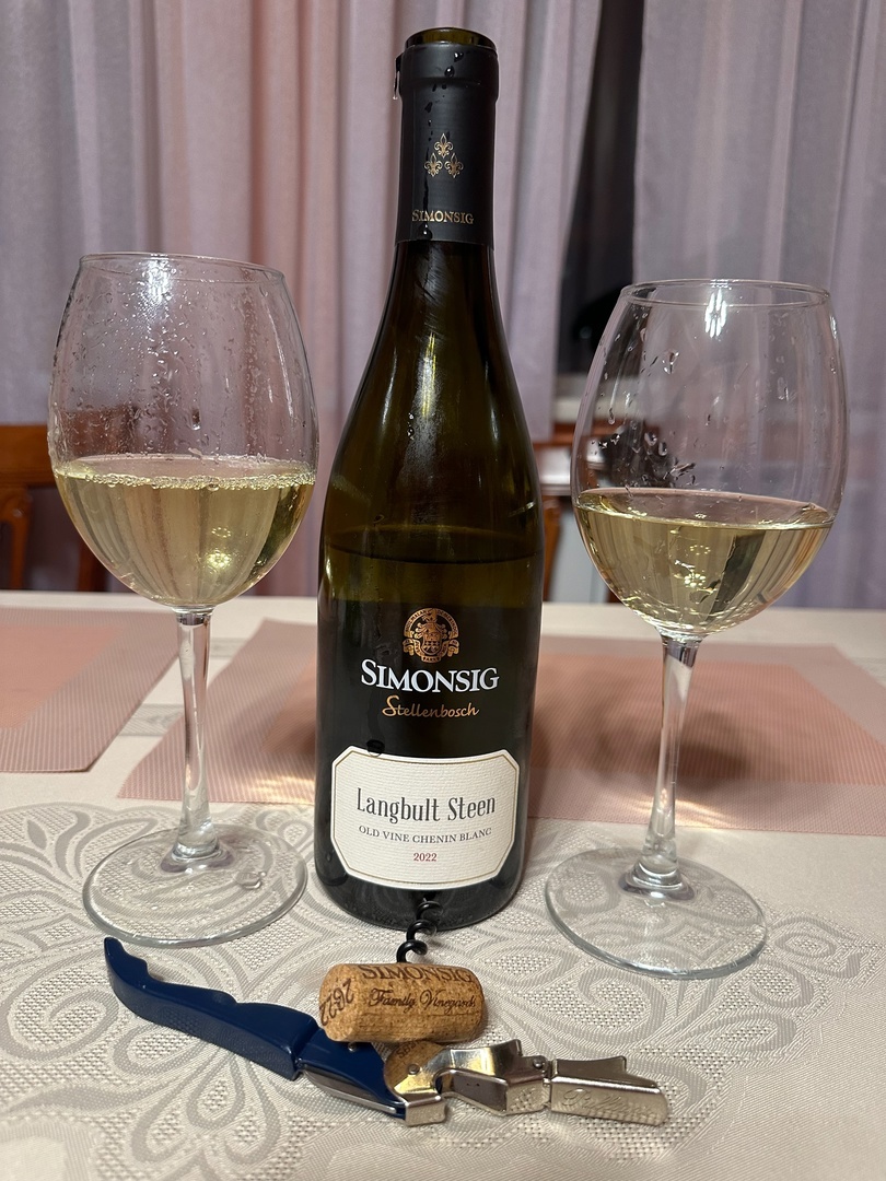 Традиционная субботняя дегустация. Сегодня решил отправиться в необычное путешествие в ЮАР и познакомиться с малоизвестным сортом винограда Шенен блан винодельни Simonsig регион Stellenbosch. История винодельни уходит в начало сороковых годов прошлого века и по сей день хозяйство управляется уже третьим поколением семьи Малан . Первое вино Шенен блан выпущено в 1968 году. Получается мы с ним ровесники. Многолетний опыт в производстве Шенен Блан привёл к созданию Langbult Steen, ранее известного как Шенен с дуба, которое стало первым вином Simonsig со статусом «старая лоза». К дегустации взял достаточно молодой 2022 год. Это было первое моё знакомство с данным сортом. Тем интереснее дегустировать в слепую. Сначала разобрать вино, а потом прочитать, какой ароматический профиль описан в источниках. Давайте поделюсь своими впечатлениями. Оформление и упаковка сразу намекают на серьёзный подход и солидность. Брендовые термоусадка и пробка. Строгий классический дизайн. При розливе сразу ощу
