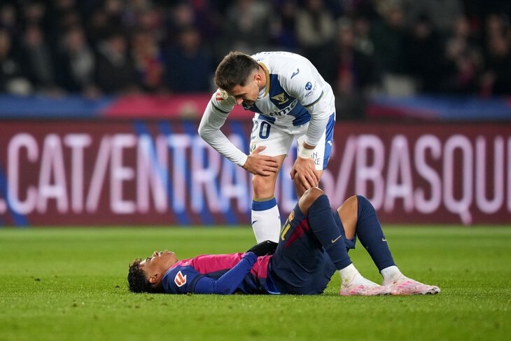 Мимо «Атлетико». У «Барселоны» еще одна потеря: опять травмировался Ламин Ямаль. У него растяжение голеностопа, точно пропустит две-три недели. Ямаль час отыграл с травмой – зачем? Ламин травмировался на 17-й минуте проигранного матча с «Леганесом»: полузащитник Иван Неу опасно подкатился, судья не свистнул. Стык неприятный: на повторе видно, как вывернулась стопа. И снова правая нога – травмировал лодыжку осенью, только-только залечил. Теперь голеностоп. Момент выглядел тревожно. Ламин даже просил замену перед перерывом: показывал скамейке жестами. Потом мимикой договорились, что он доиграет до перерыва: было впечатление, что уж на второй тайм не выйдет. Но Ямаль все-таки появился, ушел на замену только после 75 минут. Итого почти час с травмой – ну и зачем? «Ламин играл до тех пор, пока мог продолжать, – объяснял ассистент главного тренера Маркус Зорг сразу после матча, рулил на скамейке он из-за дисквалификации Ханси Флика. – Не могу сказать, что с Ямалем. Он пройдет медобследование