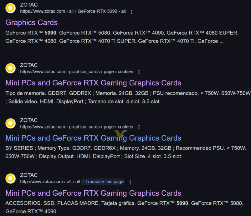 Сегодня произошел очередной случай непреднамеренной утечки спецификаций графических карт от компании Zotac. На этот раз утечка касается линейки графических процессоров RTX 50. Zotac случайно разместила записи о семействе RTX 5090/D, RTX 5080 и RTX 5070 на своем веб-сайте, которые, однако, были быстро удалены, но Интернет, как известно, помнит всё. Хотя большинство вышеупомянутых графических процессоров уже попали в многочисленные утечки, недавно обновленные параметры от Zotac являются первым официальным данными, подтверждающим, что флагманская карта RTX 5090 будет комплектоваться 32 ГБ памяти стандарта GDDR7.