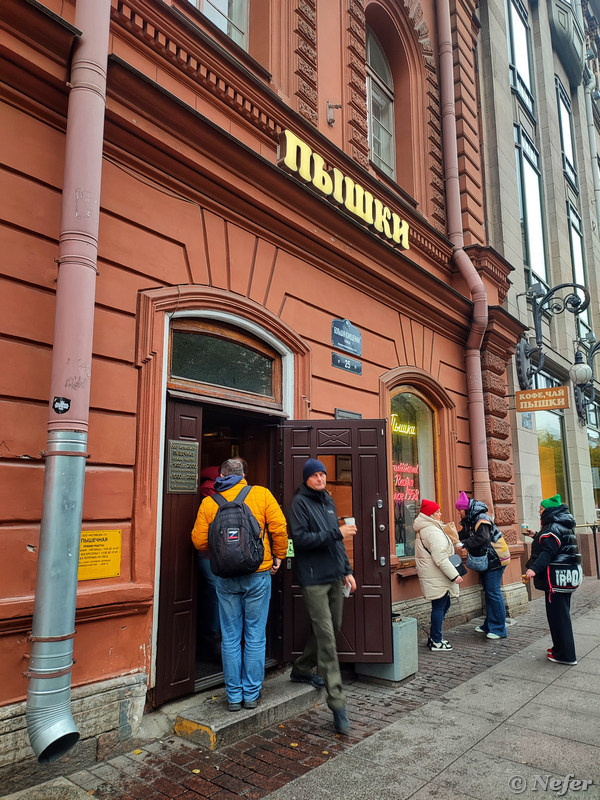 Есть в Питере место, куда ходят есть пышки Пышечная расположена в здании Французско-немецкой церкви Святого Павла, построенной в 1772 году. До пышечной в здании располагался магазин "Охота и Спорт". А основную его часть с 1933 года занимает шахматный клуб имени Чигорина. В советское время это была улица Желябова, в честь революционера. По-другому называлась и сама пышечная: "Золотой колосок" в 1950-е, потом "Трест столовых Куйбышевского района" и Столовая № 6, а в начале 1990-х кафе стало называться "Час Пик". Сейчас пышечная зарегистрирована как "Желябова 25", но в народе говорят просто - пышки на Большой Конюшенной. Помещение разделено на две части. В каждом зале своя касса, но все равно скапливаются очереди. Когда-то в одном зале располагалась котлетная, а во втором - пышечная, теперь везде пышки. Эта пышечная внесена в Красную книгу памятных мест Петербурга. Аппарат, который производит пышки, был выпущен в 1950-х годах! Традиции чтят. На столиках лежит нарезанная бумага. Салфетки т