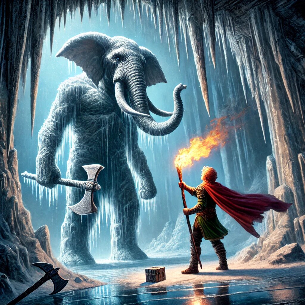 Тимйяллани вошел в ледяной грот, подсвечивая себе факелом. В другой руке он держал топорик. Было холодно. Изо рта шёл густой пар.