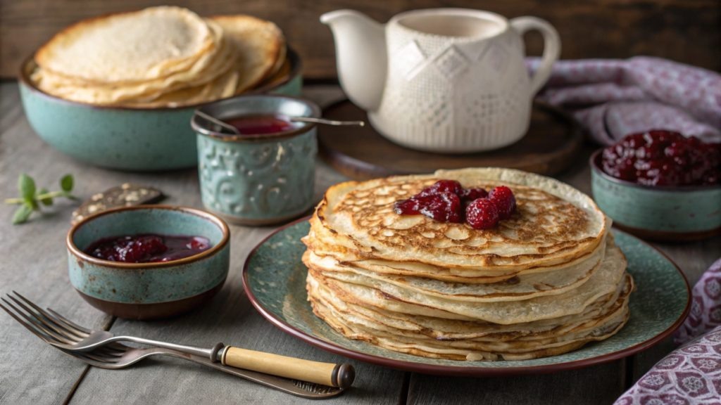 Можно использовать как пшеничную муку, так и смешанную с гречневой для более насыщенного вкуса.Варенье можно заменить на мед или сироп, если вы предпочитаете менее сладкие варианты.Блины можно подавать с маслом, сметаной или йогуртом для разнообразия.Готовые блины хорошо хранятся в холодильнике, их можно разогреть на сковороде или в микроволновке.