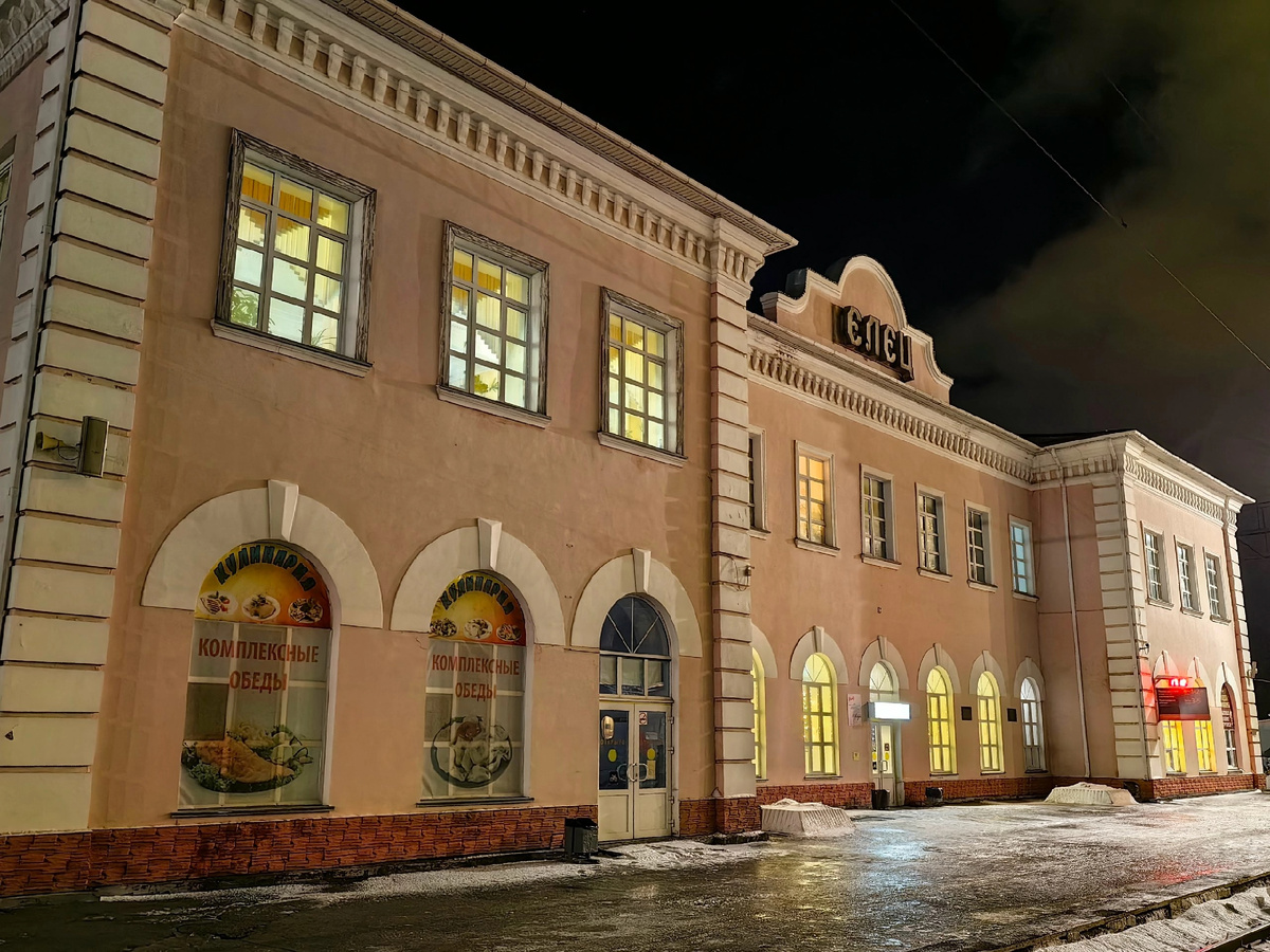 Сегодня Елец - важнейший транспортный узел Центрального Черноземья. В 1874 году было построено здание первого вокзала. А в 1896 год − построено здание нового вокзала. В 1963 году послевоенное здание вокзала подверглось значительной реконструкции. Все одноэтажные объёмы были надстроены вторыми этажами, с южной стороны устроены новые подъездные пути и станция получила островной характер.