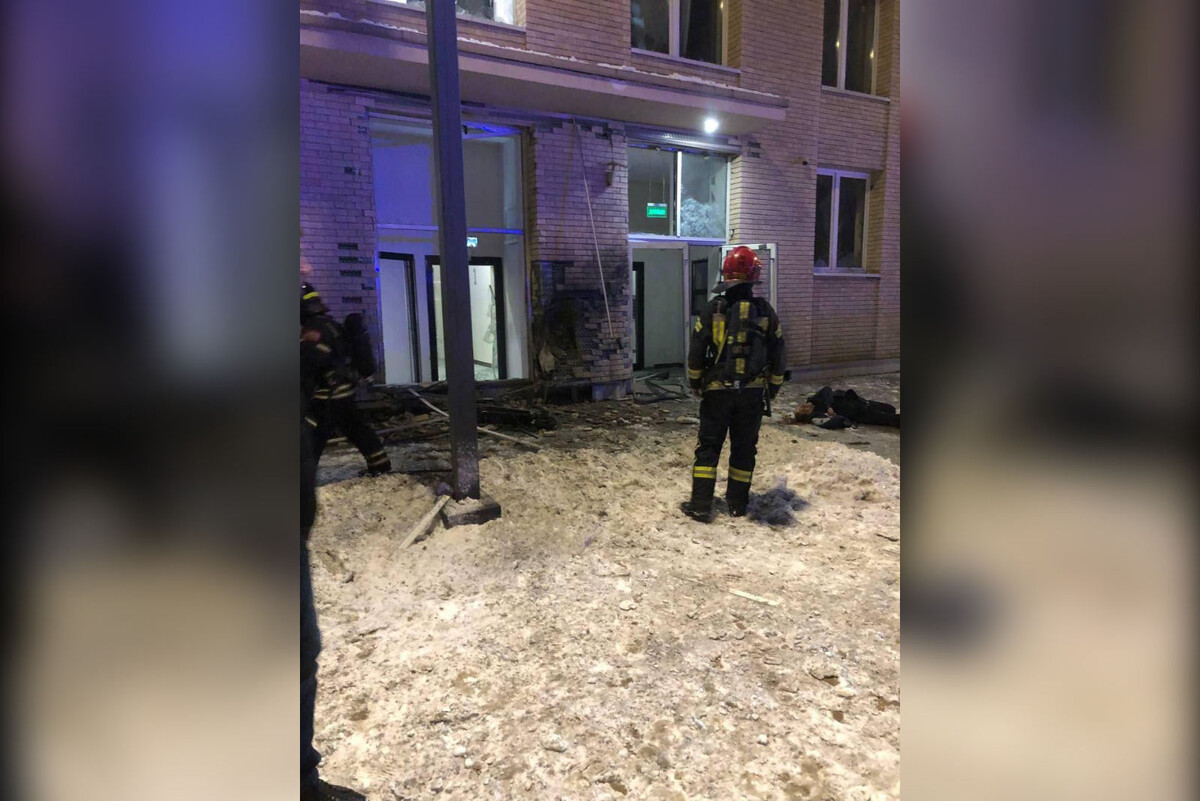 Как сообщают СМИ, возможно, было заложено самодельное взрывное устройство. С первого по третий этажи выбило стекла, потрескалась облицовка дома, обломками побито три автомобиля.