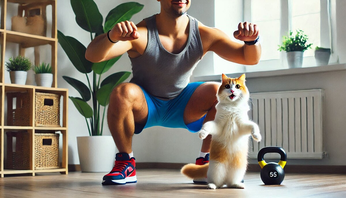 Давайте честно: обычные тренировки — это тоска. Приседания, отжимания, бег на месте... скука зелёная! Но стоит добавить кота, как всё превращается в абсурдную комедию с элементами экшена. Он прыгает вам на спину, атакует ваши шнурки, ныряет между ног и тут же делает вид, что он здесь ни при чём. Теперь ваша утренняя зарядка больше похожа на боевик, снятый по мотивам «Джуманджи».