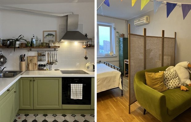 Самостоятельно обновили квартиру, перекрасили мебель и применили интересные решения — вам точно будет, чем вдохновиться В этой квартире блогер и художница Даша Титова живет вместе с мужем и котом. Поводом для ремонта послужил подъем плитки «домиком» на кухне. Укладку новой плитки супруги доверили рабочим, а остальной переделкой занялись самостоятельно, не привлекая дизайнера. В квартире много самоделок и аутентичных вещей, которым дали вторую жизнь. Место: г. Москва