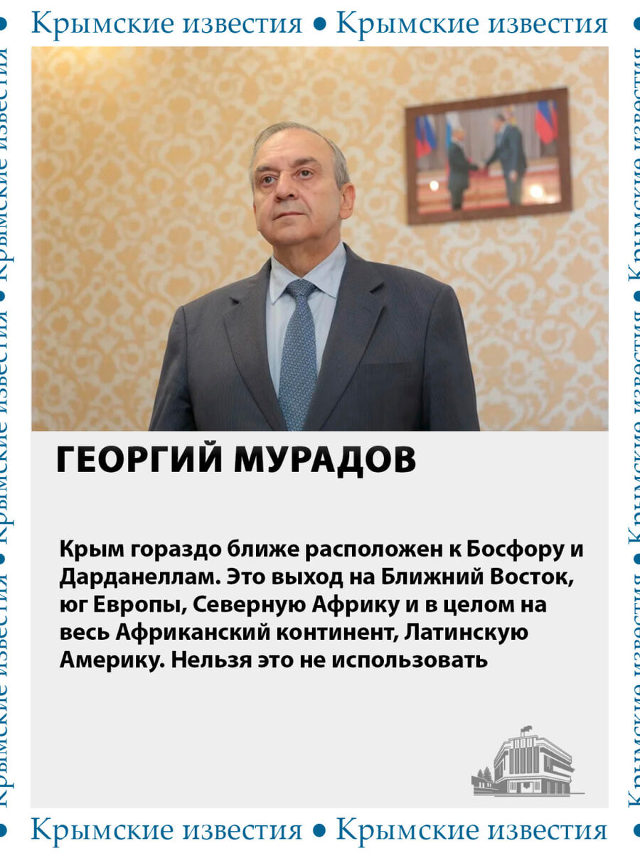 Странам Запада всё ещё интересны инвестиции в крымский бизнес. Основная причина – в географическом положении региона, отметил постпред республики при президенте РФ Георгий Мурадов. Западные бизнесмены, в том числе из недружественных стран, прорабатывают схемы, как вести расчёты с Крымом. Однако, подробности об этих инвесторах и коммерсантах не раскрываются, чтобы они не попали под санкции, отметил Мурадов в эфире радио «Спутник в Крыму». Ранее сообщалось, что делегация из Крыма отправится в страны Африки с бизнес-миссией. Крымские известия. Больше новостей Вконтакте | Одноклассники | Telegram