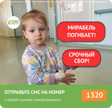Здравствуйте, дорогие друзья и помощники! В предновогодней суете, ожидании нового и чудесного, среди своих главных желаний мы всегда загадываем самое заветное для себя и близких - здоровье! Это бесценный подарок, благодаря которому реализуемо всё! Но есть маленькие детки, у которых этого главного подарка нет. И будущее для них может случиться, только если изменится их настоящее. И шанс у этих деток только один - это Ваша помощь, Ваше настоящее чудо! Девочка с волшебным именем Мирабель может скоро погибнуть без такого чуда. Ей всего 2 года. Дважды прооперированный порок сердца, гемодинамически единственный желудочек, синдром Ивермарка – это лишь небольшая часть тех проблем, с которыми ежедневно пытается справиться её крохотное сердечко! Девочка встречает каждый новый день с улыбкой, любит пританцовывать, прислушивается к звучанию ноток, рисует. Но она и не догадывается, что каждый такой день может стать для неё последним, ведь лимит сил в её больном сердце закончился... Помогите спасти