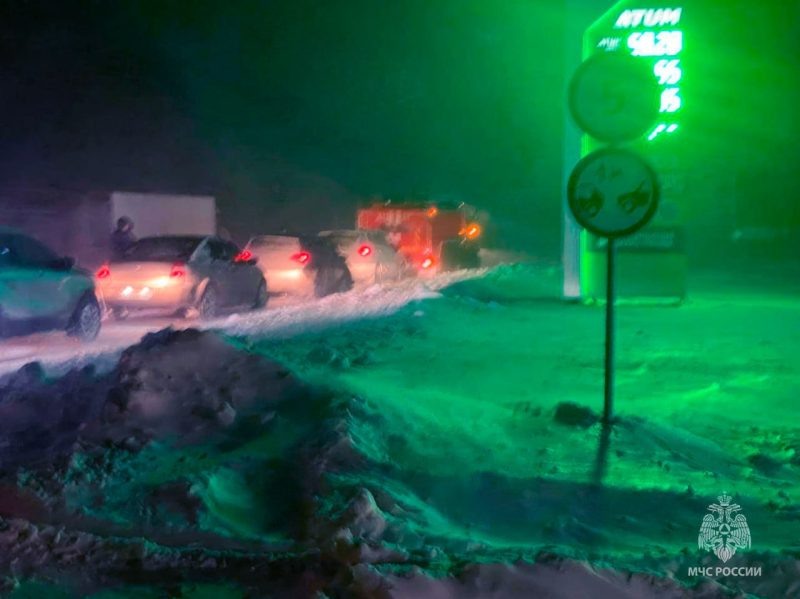 В Оренбуржье спасатели МЧС вывели из бурана колонну из восьми автомобилей