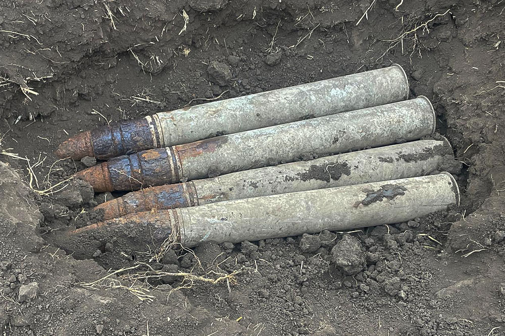 В станице Кисляковской местный житель при помощи трактора перекапывал свой участок. В какой-то момент он наткнулся на крупный металлический предмет. По внешнему виду находка напоминала боеприпас, поэтому мужчина решил незамедлительно позвонить в 112. Прибывшие на адрес взрывотехники Росгвардии обследовали место и извлекли на поверхность четыре артиллерийских снаряда калибра 76 мм, пролежавших в земле со времен Великой Отечественной войны.