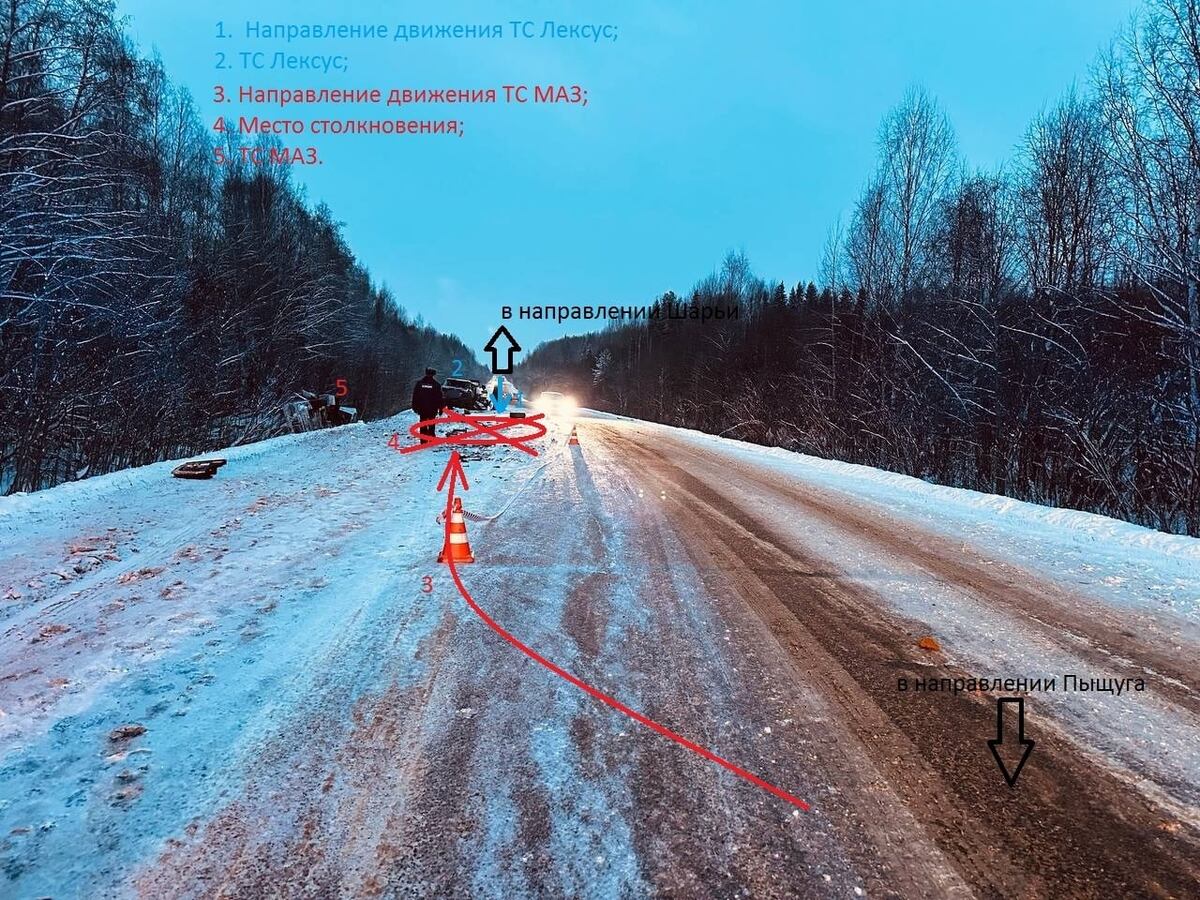 66-летний водитель на Лексусе ЛХ в 14:00 двигался по трассе «Нижний Новгород-Шарья-Великий Устюг» в Пыщугском районе, когда 46-летний автомобилист на МАЗе с прицепом пошел на обгон и врезался «лоб в лоб» с иномаркой.