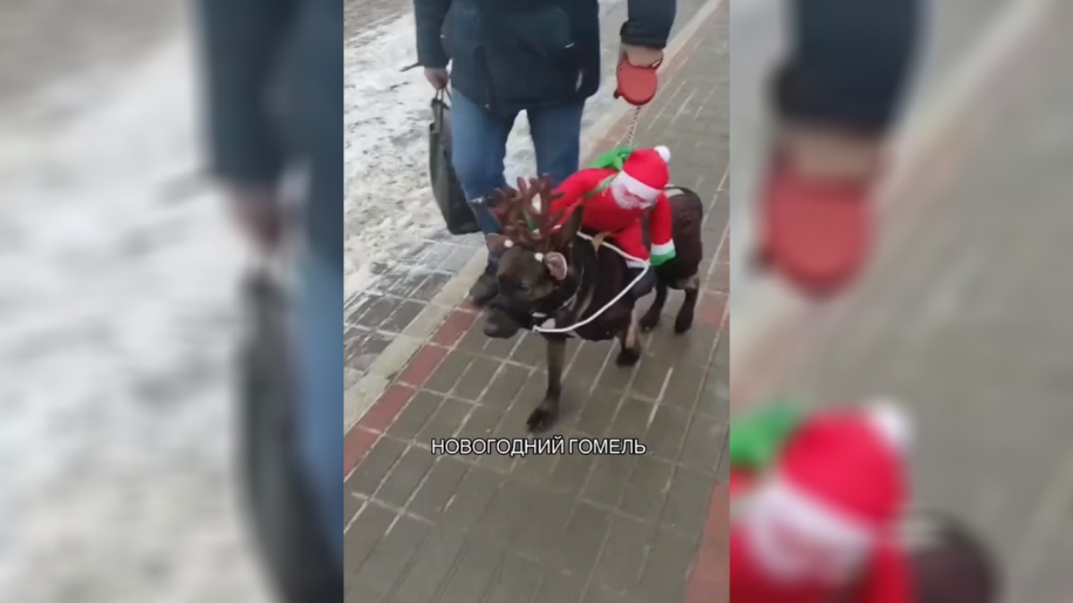 Необычную парочку на днях заметили на улицах Гомеля: мужчина выгуливал на поводке "новогоднего оленя". И жители города, и интернет-пользователи оценили креативность хозяина. Читайте также: «Это дичь!» - Белорусов во время сплава на байдарках на Полесье напугал страшный вой. Что это было? В роли «новогоднего оленя» выступила собака, на которую хозяин помимо намордника и портупеи надел игрушечные оленьи рога. На спину питомцу мужчина также усадил игрушечного Санту, который словно оседлал «оленя». Многие комментаторы под видео подтвердили, что хозяин пса «сделал всем новогоднее настроение». «Хоть ты в Гомель мчи увидеть это чудо!» — написала одна из зрительниц, а другая ответила фразой, давно ставшей мемом: «Так вот ты какой, северный олень». ... Продолжение читайте тут. (Или тут.) Читайте также: "Идет на работу" — Водитель заметила на улице дикого оленя в светоотражающем жилете. Как так получилось?