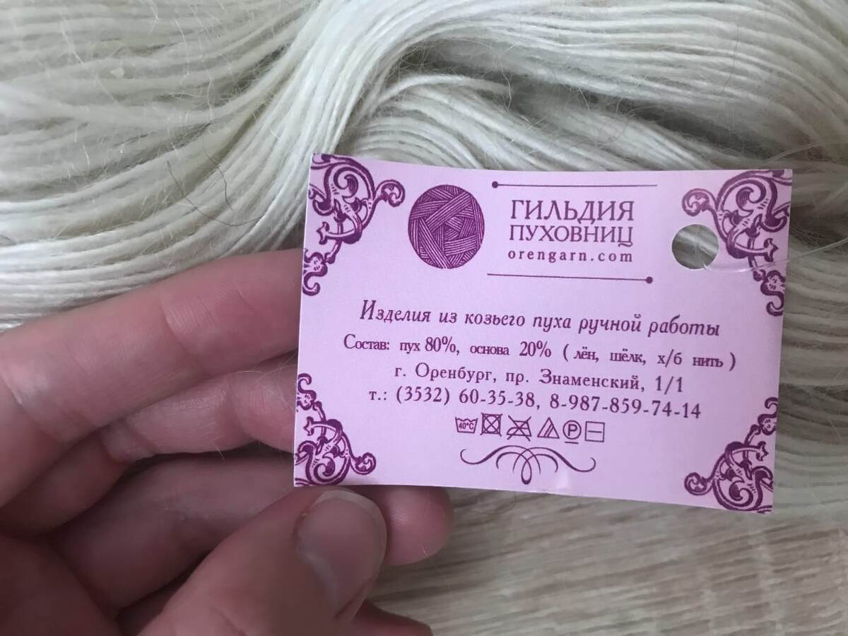 Всем доброго времени суток! Сегодня расскажу о своём опыте вязания из пряжи, из которой вяжут знаменитые оренбургские пуховые платки. Состав на фото. Продаётся такая пряжа в пасмах. Мне привезли 1 пасму весом 130гр. в подарок, зная мою любовь к вязанию. Поэтому по стоимости не сориентирую, но прикладываю визитку с указанием сайта. Я перемотала пасму в 2 мотка для более удобной работы. Долго думала, что бы мне связать. Решилась на шапку-ушанку спицами №4 в 2 нити. Краткое описание: делим обхват своей головы на 4 части - ушки, отворот спереди и затылочная открытая часть. Вяжем резинкой 1х1. Ширину ушек каждый определяет самостоятельно (в моём случае 16 п.). Длину ушек и отворота спереди также каждый определяет для себя самостоятельно. Провязав отдельно каждое ушко, отворот спереди, переходим на круговые спицы (набрав ширину задней открытой части). Далее вяжем по кругу. Я закрывала макушку в 4 ряда (для придания большей округлости). Более подробно писать про вязание шапки-ушанки не буду