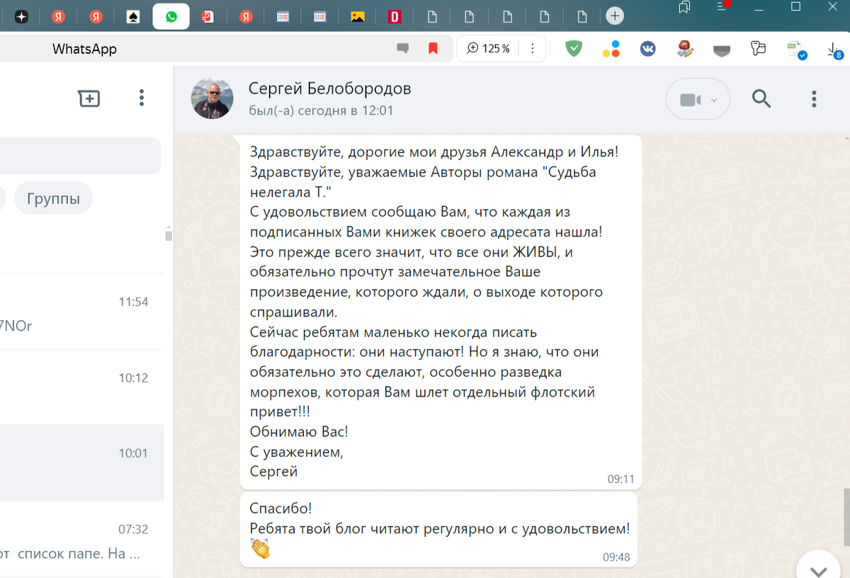 Друзья! Благодаря стараниям и усилиям Сергея Белобородова роман "Судьба нелегала Т." дошел до адресатов. Каждая книга вручена индивидуально.