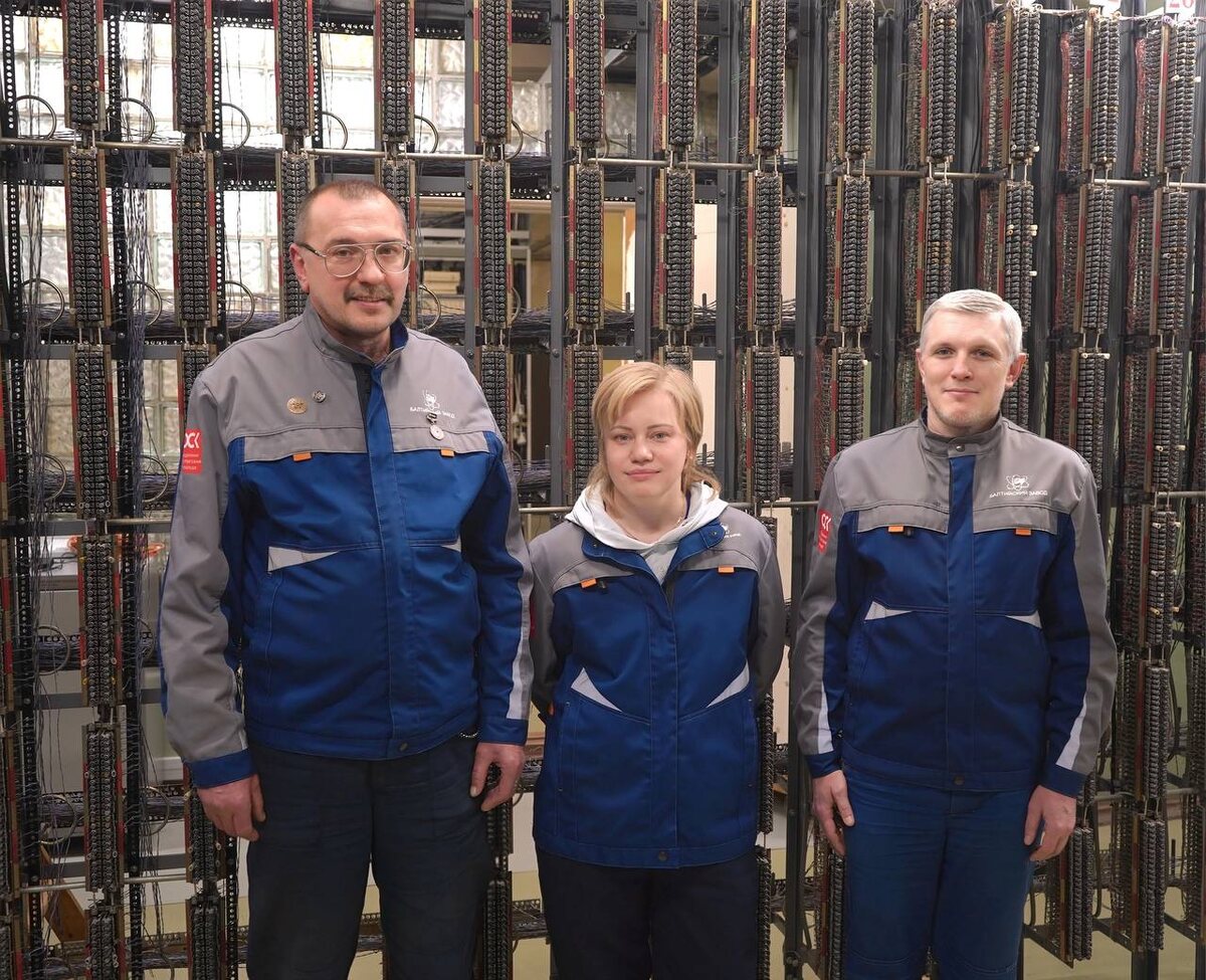 Электромонтеры Александр Мозолевский, Екатерина Колоколова, Сергей Письмак работают на Балтийском заводе ОСК в одной бригаде, на участке связи. Они отвечают за телефонию, часофикацию и радиофикацию завода, а также проводят связь на строящиеся заказы. Стаж Александра Мозолевского на предприятии — 25 лет. Александр считает, что работа на заводе — это уверенность в завтрашнем дне. «На Балтийском заводе созданы нормальные условия труда. Мне нравится моя работа — восстанавливать и ремонтировать оборудование», — отметил он. Екатерина Колоколова, по мнению коллег, является жемчужиной коллектива. Она принимает заявки на ремонт оборудования, работает на кабельном кроссе. «Работать легко, когда рядом с тобой профессионалы, когда тебя понимают и уважают. С первых дней работы почувствовала доброжелательность коллектива, команду и готовность руководства помочь в любом вопросе», — подчеркнула Екатерина. Сергею Письмаку нравится то, что он причастен к строительству атомных ледоколов. Ведь больше ник