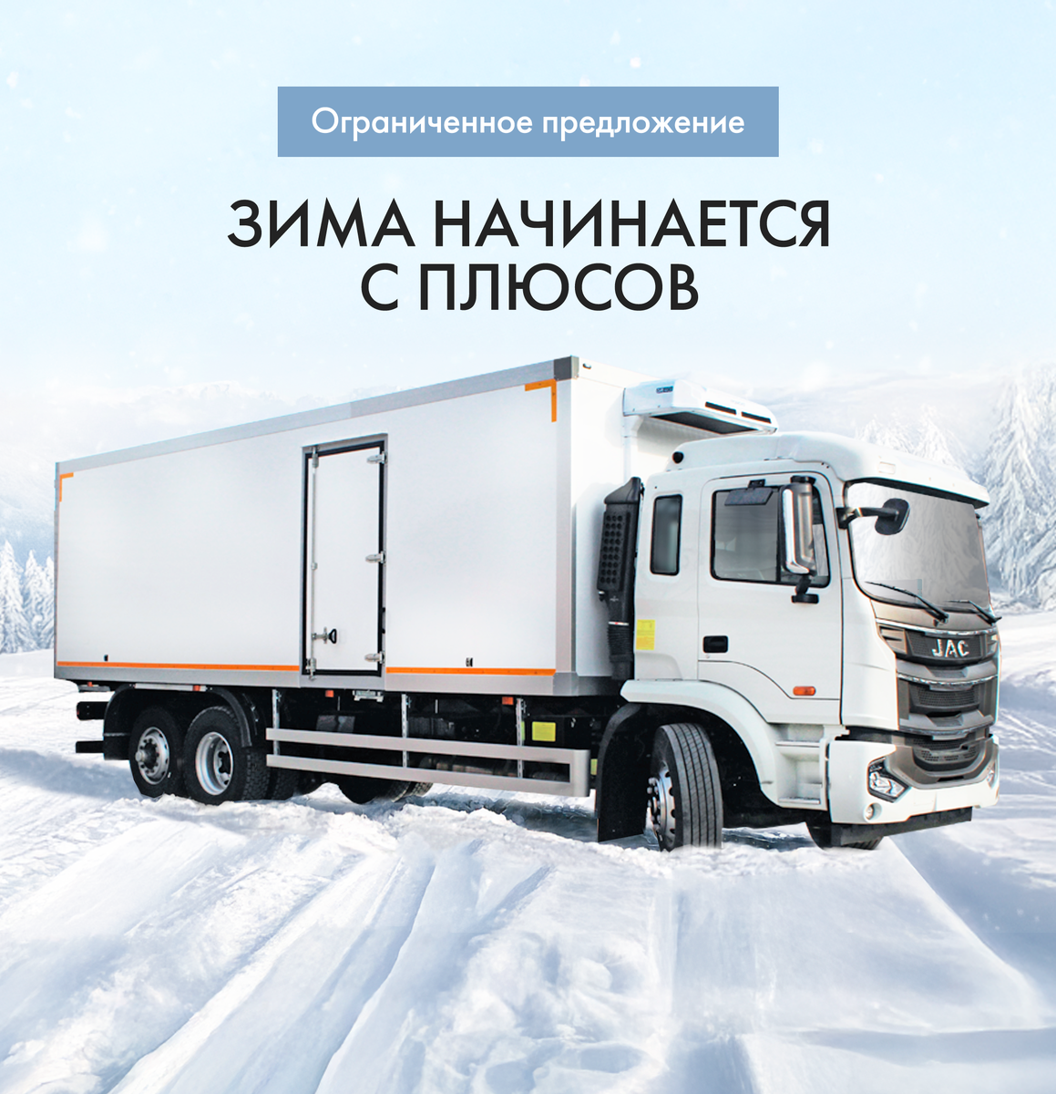 Акция «Зима начинается с плюсов» гарантирует предоставление запасных частей и расходных материалов для проведения технического обслуживания ТО-20000 км, ТО-40000 км, ТО-60000 км автомобиля, приобретенного у официального дилера JAC Motors на территории России. Акция распространяется на среднетоннажные шасси JAC N90, JAC N120 и JAC N200, а также комплектные автомобили на их базе, оборудованные надстройками и специальными кузовами, договор, на которые был заключен в период с 14.11 по 31.12 2024 года. Сертификат действителен при обращении на любую официальную дилерскую станцию на территории России, в течение гарантийного срока на автомобиль. Акция обеспечивает дополнительную выгоду владельцам среднетоннажной техники JAC, исключая расходы на покупку запасных частей и расходных материалов для технического обслуживания. Благодаря обновлению программы JAC Finance 3.0 и запуску акции «Зима начинается с плюсов», клиенты смогут получить прямую выгоду сразу при покупке автомобиля. Подробности можн