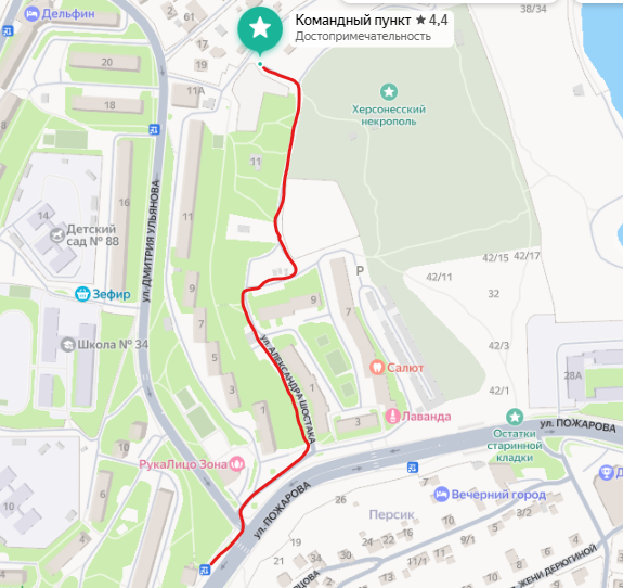 В этой статье узнаем где находился командный пункт заместителя командующего Севастопольским оборонительным районом в 1942 году. Ну что, пойдем к командному пункту? Пройти к командному пункту можно только со стороны улицы Шостака. Выходим на остановке "Улица Дмитрия Ульянова" ( останавливается там более 20 различных маршрутов автобусов и троллейбусов, поэтому не буду их все перечислять). Вот такие красивые кедры растут рядом с остановкой: Ориентиром служит этот дом: Мы не будем заходить во двор, а сразу повернем налево и пойдём вдоль дома. На соседнем доме специально сняла мемориальную табличку с информацией чьим именем названа улица. Идём прямо вдоль дома, никуда не сворачиваем. Интересный рисунок встретился: Справа почему-то прикреплена табличка "Конференц зал", но это больше напоминает гараж и, скорее всего и является гаражом. Проходим еще немного и за этим домом нужно будет повернуть направо: Повернули направо и тут хороший асфальт закончился: К командному пункту ведет только