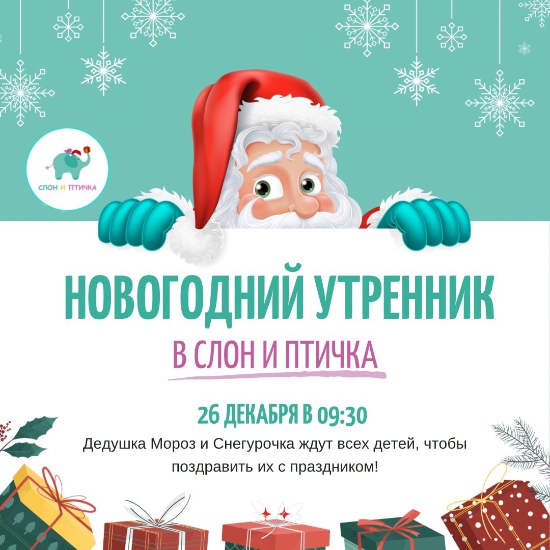 ❄Новый год — пора чудес и волшебства !❄ ✨ 26 декабря в 09:30 Дедушка Мороз и Снегурочка ждут всех детей, чтобы поздравить их с праздником! Такое поздравление подарит ребятам незабываемые эмоции, а также напомнит о главном — дружбе! Ну и, конечно, наполнит праздник новогодними песнями и танцами 🎶 🎉В программе: * Настоящая новогодняя магия * Волшебное появление любимых героев * Знакомство и общение с ребятишками * Незабываемые фото с любимыми героями * Игры, танцы, хороводы и творческие номера * Подарки каждому ребенку! 🎁🎁🎁 Этот Новый год обещает быть самым ярким и счастливым! Ждем вас с нетерпением! Предварительная запись обязательна. 📞 +7 (923) 110 88 80 🏠 Новосибирск, ул. Инская д. 67 👶 Детский центр-сад «Слон и Птичка» Ждём всех желающих! Стоимость 500₽, если не ходите к нам в садик 🫶🏻 До встречи на празднике! ❄✨