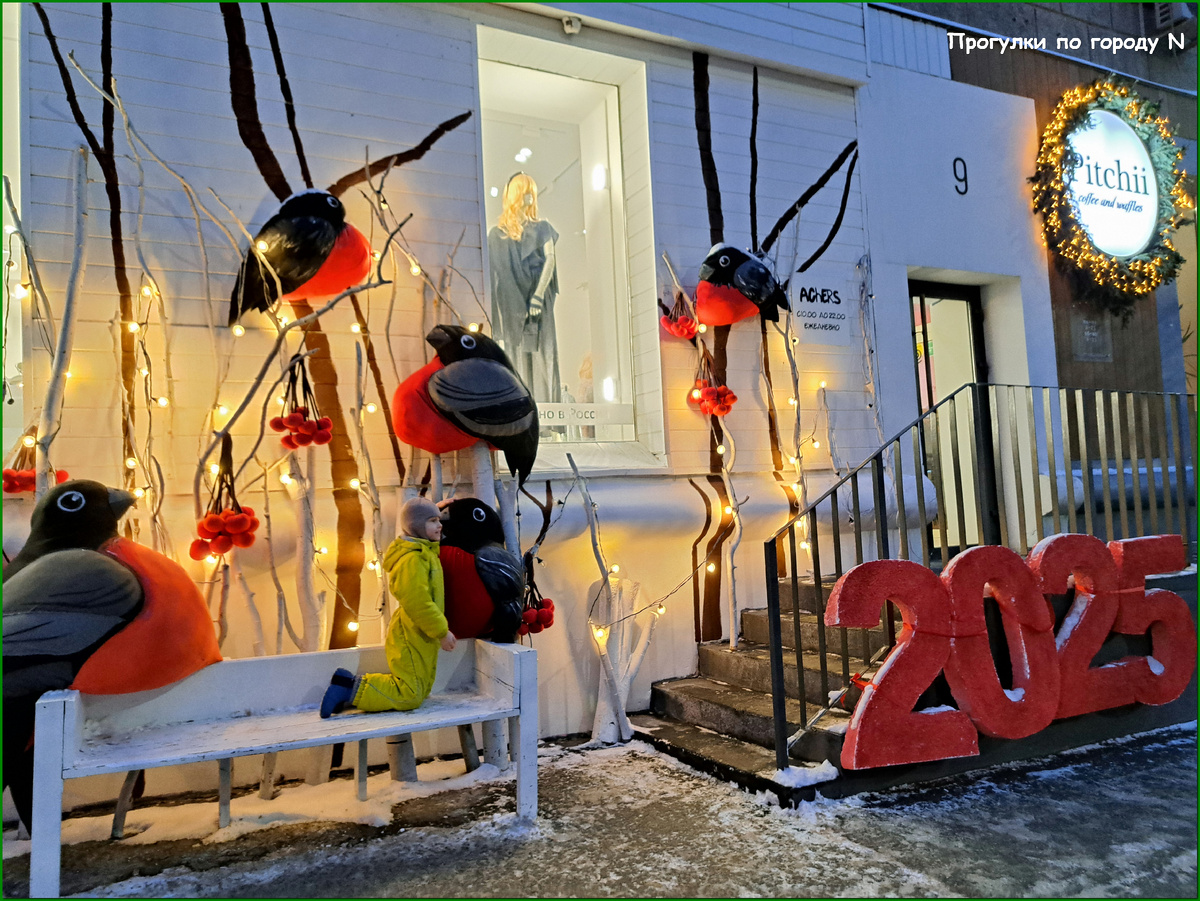 И вот, пешеходная часть улицы Ленина из прошлого поста закончилась. Но путешествие продолжается. Нужно просто идти дальше по Ленина, наслаждаясь каждым шагом в этом зимнем чуде! Здесь каждый уголок пропитан духом Нового года. Пожалуй, самой необычной локацией этого сезона, по нашему мнению, является стайка тканевых мягких снегирей, уютно расположившихся на лавочке. Новосибирск, улица Ленина, 9 Купеческий дом, на углу улиц Урицкого и Ленина, как всегда, выделяется своей яркостью и новогодним убранством. Новосибирск, улица Ленина,11 В доме, где располагаются сразу два цветочных салона тоже, разумеется, есть на что посмотреть. Но, вероятнее всего, ледяное украшение у одного из салонов ещё на стадии воплощения. Возможно, кто-то уже видел окончательный итог? Любопытно узнать, чем в этом году удивит «Цветочный». Новосибирск, улица Ленина,17 Возле Кукольного театра вновь детское раздолье. Интересные ледяные скульптуры. И, конечно же, горка, с которой так весело кататься малышне. Новосибирск