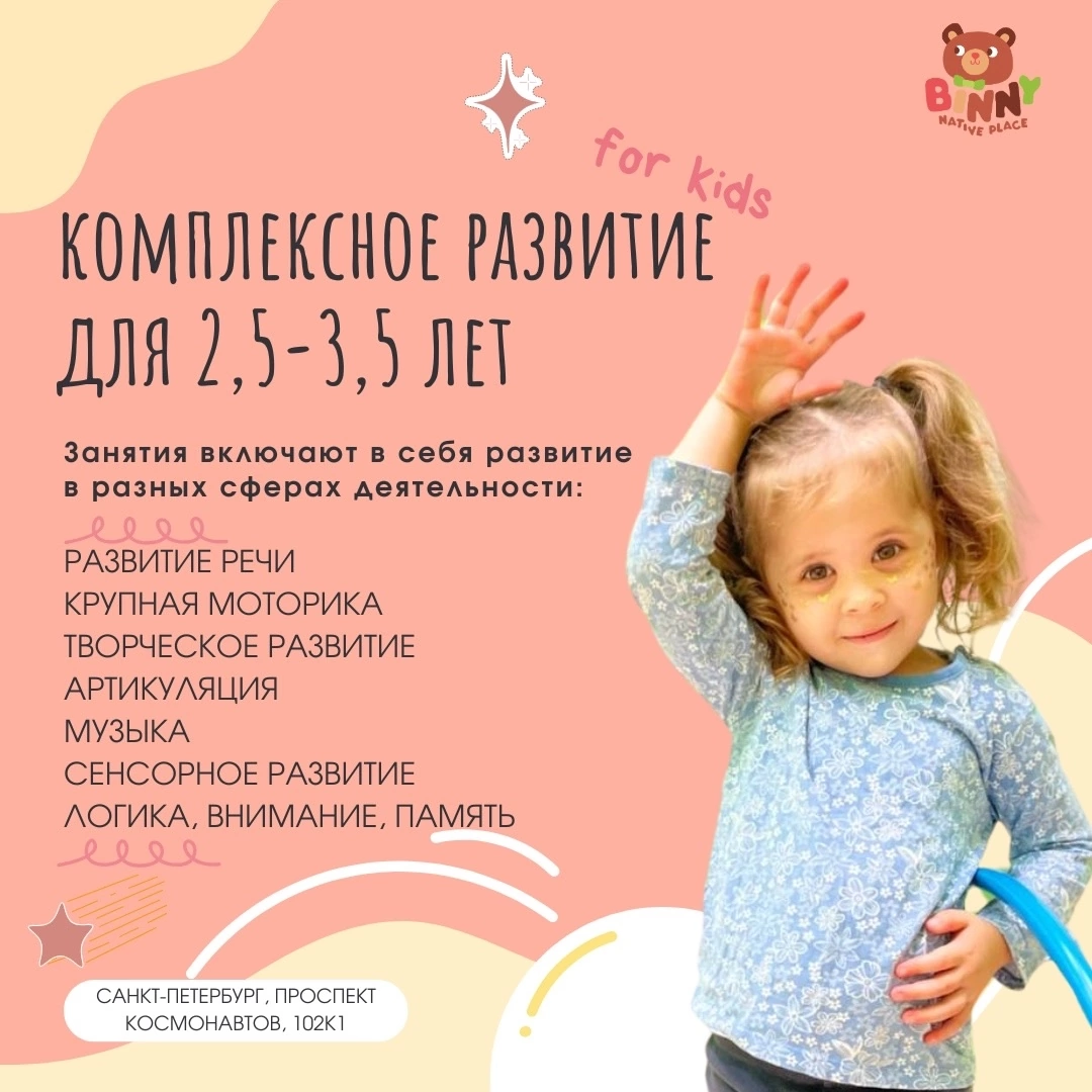 Наш детский сад BINNY рад представить вам новое направление: ✨Комплексные занятия для детей 2,5 -3,5 лет ✨ Занятия будут включать в себя развитие в разных сферах деятельности: — РАЗВИТИЕ РЕЧИ Мы будем изучать различные темы, обогащать свой словарный запас, развивать связную речь и расширять представления о мире вокруг нас. — КРУПНАЯ МОТОРИКА Спортивные активности, включающие в себя нейроупражнения помогут нам в переключении деятельности, в развитии ловкости, координации и развитии межполушарных связей. — ТВОРЧЕСКОЕ РАЗВИТИЕ Раскроем творческий потенциал детей, разовьём мелкую моторику и научим видеть прекрасное. — АРТИКУЛЯЦИЯ В каждое занятие будет включена артикуляционная гимнастика, где мы будем работать над укреплением мышц артикуляционного аппарата, над развитием силы, подвижности нашего языка. В дополнении - развитие речевого дыхания. — МУЗЫКА В занятие включена логоритмика, где мы будем петь и танцевать, учиться слушать ритм, работать с темпом. — СЕНСОРНОЕ РАЗВИТИЕ Буде