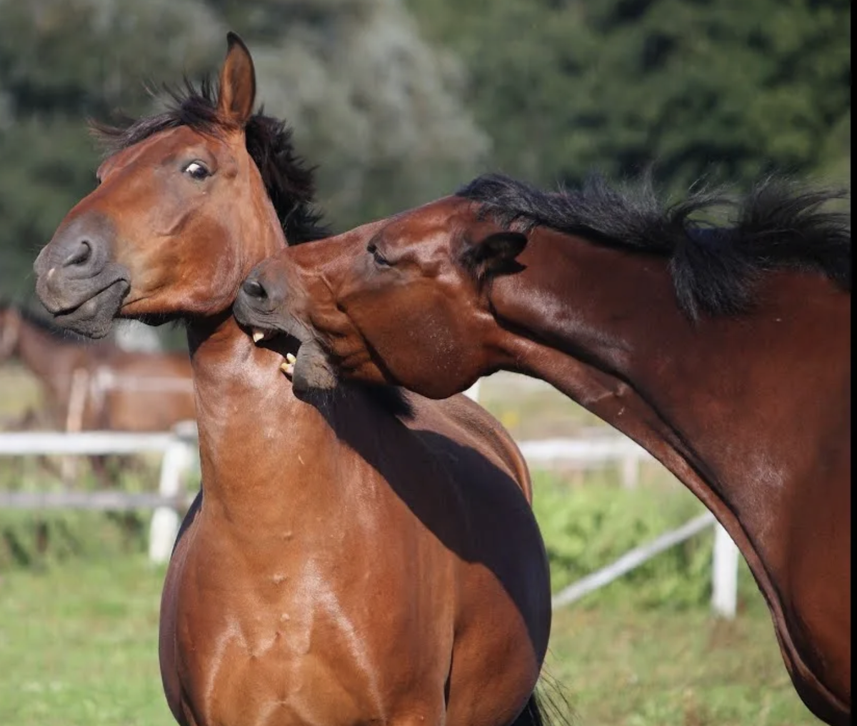 В какой момент лошадь может демонстрировать ревность: когда кого-то кормят - а ее нет. Когда внимание другому. А она ж