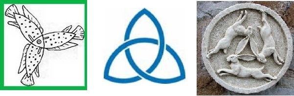 Три зайца в круге = три рыбы в круге. Рисунок рыбы – голова зайца, где хвост рыбы – уши зайца. Так Рыба-Христос – заяц-Христос. Заяц – атрибут Тота-Гермеса как сокрытия Знания, закрывания Откровения. Треугольник – символ троицы, творения, творца-Саваофа. Это Y как крест распятия, т.е. троица – казнь Христа. Бег зайцев – гон-тригон – гонимое Откровение, пекло страсти как страсти-казнь. Если рыбы – крест-Y, то зайцы – вариант трёхветвевой свастики-креста. Похоже и на три 8-ки. 8х3=24 – сутки – день – Денница как инь-ян – дуал – диавол как казнимый-утраченный Бог, раздвоение-расщепление – утрата Цельного-Единого Разума.