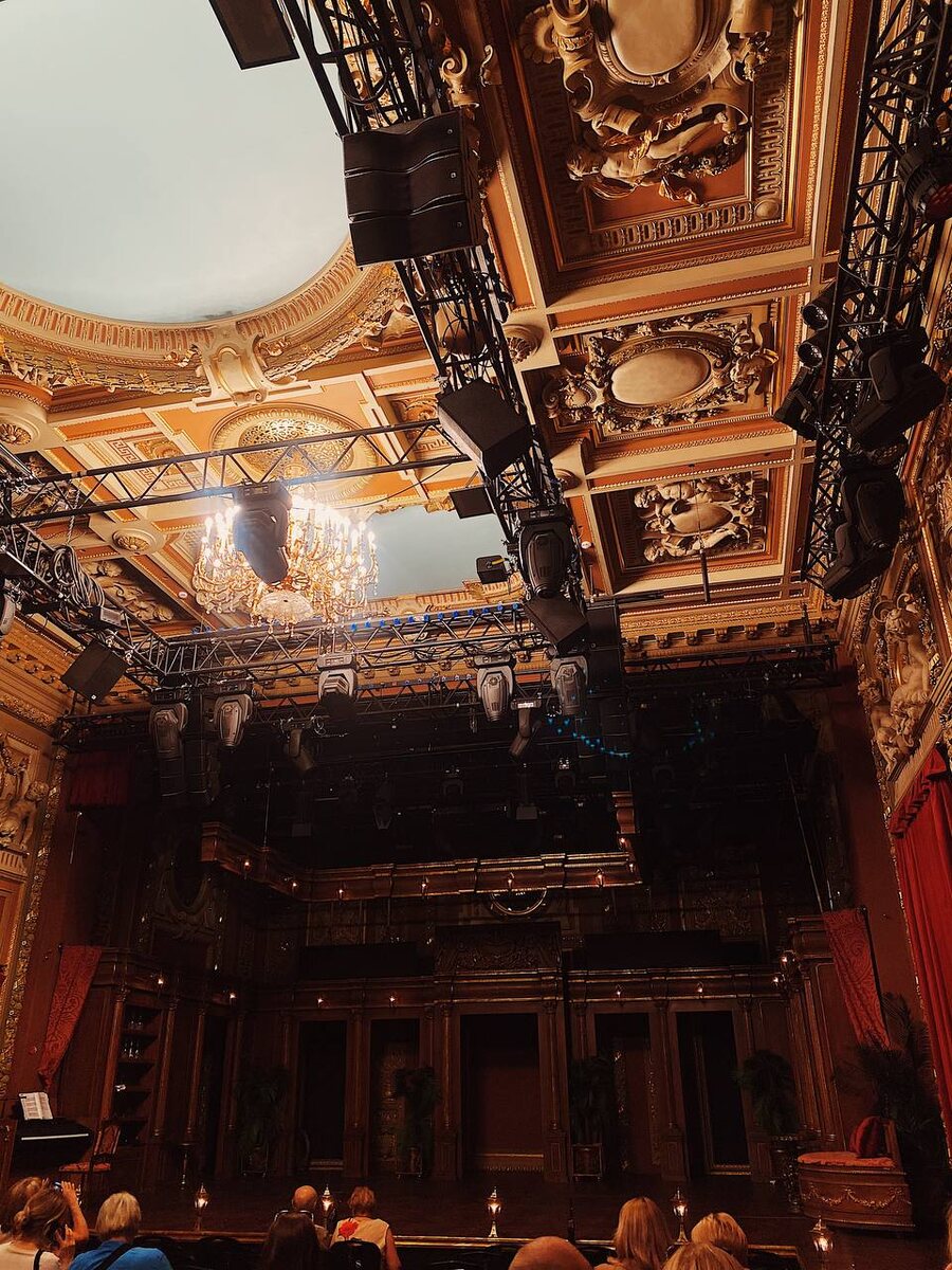Сам театр довольно маленький, его не сравнить с тем же самым МХАТ или МХТ. Он уютный, но очень компактный! Зал отличается от многих, потому что он расположен больше в длину, чем в ширину. Билеты у нас были на 8 или 9 ряду, но казалось, что это очень близко и мы видели прекрасно всех актеров и их мимику.