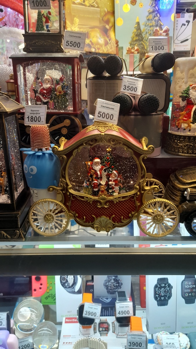 Вчера в переходе на стации метро Кузминки.Я в поладки увидел вот такие вот прикольные новогодние товары.На любой вкус. Вот такие вот фигурки 2 новогодние с героими из мульфильма.