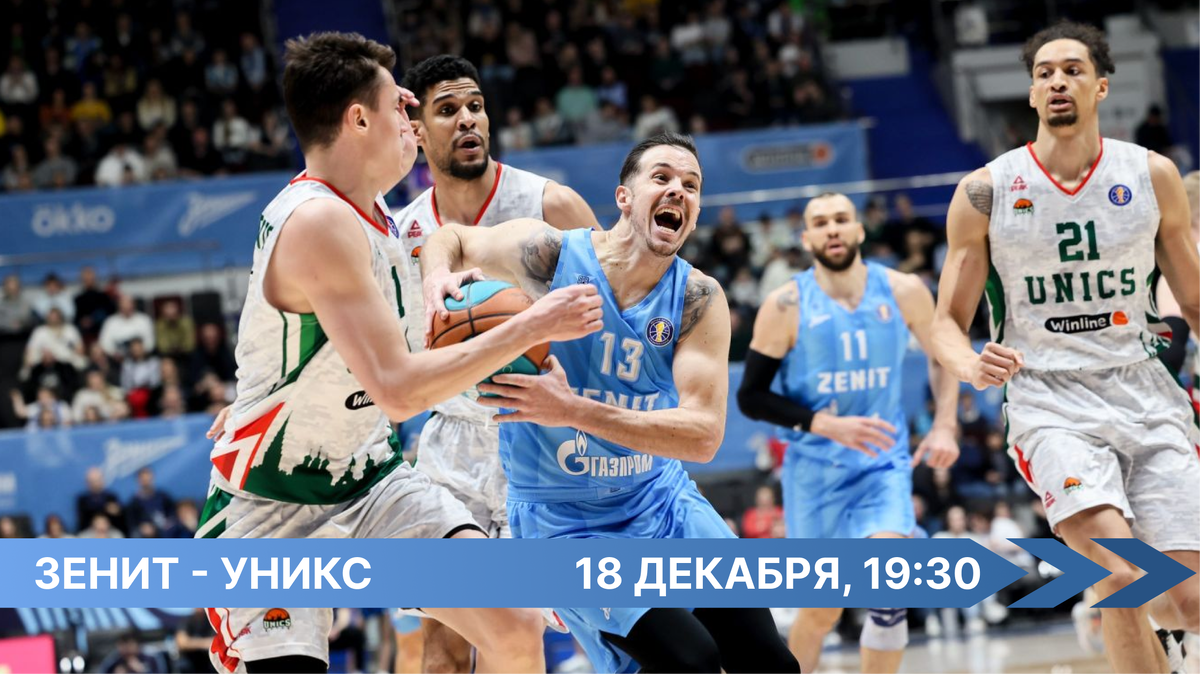 18 декабря в 19:30 по московскому времени в Санкт-Петербурге на «Сибур Арене» пройдет один из самых ожидаемых матчей регулярного сезона Единой лиги ВТБ. Битва между «Зенитом» и УНИКСом обещает стать жарким противостоянием. Казанцы еще не побеждали клубы из «большой четверки», а петербуржцы уже набрали впечатляющую победную серию. Игру покажут каналы «Матч ТВ», «Матч Игра» и онлайн-сервис Okko. «Зенит» 12 побед подряд – показатель абсолютной концентрации и уверенности «Зенита». После 19 матчей команда занимает вторую строчку в таблице, уступая лидерство ЦСКА лишь по дополнительным показателям. 89 набранных очков в среднем против 73 пропущенных говорят, что игра «сине-бело-голубых» сбалансирована как в атаке, так и в защите. В прошлом туре «Зенит» разгромил «Енисей» (97:69) на выезде. Особенно ярко себя проявил Егор Рыжов, установивший личный рекорд результативности — 23 очка. Ранее блистал Денис Захаров, выдав шикарный матч против «Астаны». Теперь фанаты гадают: кто станет героем проти