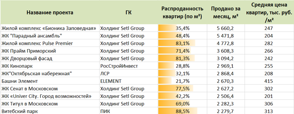 Топ ЖК и застройщиков по продажам в Санкт-Петербурге за ноябрь