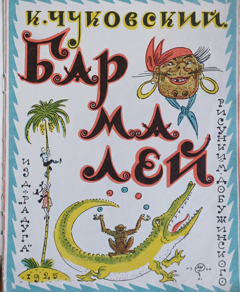 Первое издание сказки «Бармалей» с рисунками М. Добужинского вышло в 1925 году издательством «Радуга». Книга содержит 13 страниц с иллюстрациями, выпущена тиражом 10 000 экземпляров. Размер издания — 28х22 см, в цветной издательской иллюстрированной литографированной обложке. Также существует воспроизведение первого издания 1925 года в серии «Художники детям» (Ленинград, «Художник РСФСР», 1983). В книге 16 страниц, есть иллюстрации, бумажная обложка, энциклопедический формат. Издание содержит вступительную статью о художнике и историю создания книги. Мстислав Валерианович Добужинский (2 (14) августа 1875, Новгород, Российская империя — 20 ноября 1957, Нью-Йорк, США) — русский и литовский художник, мастер городского пейзажа, участник творческого объединения «Мир искусства», художественный критик, мемуарист.