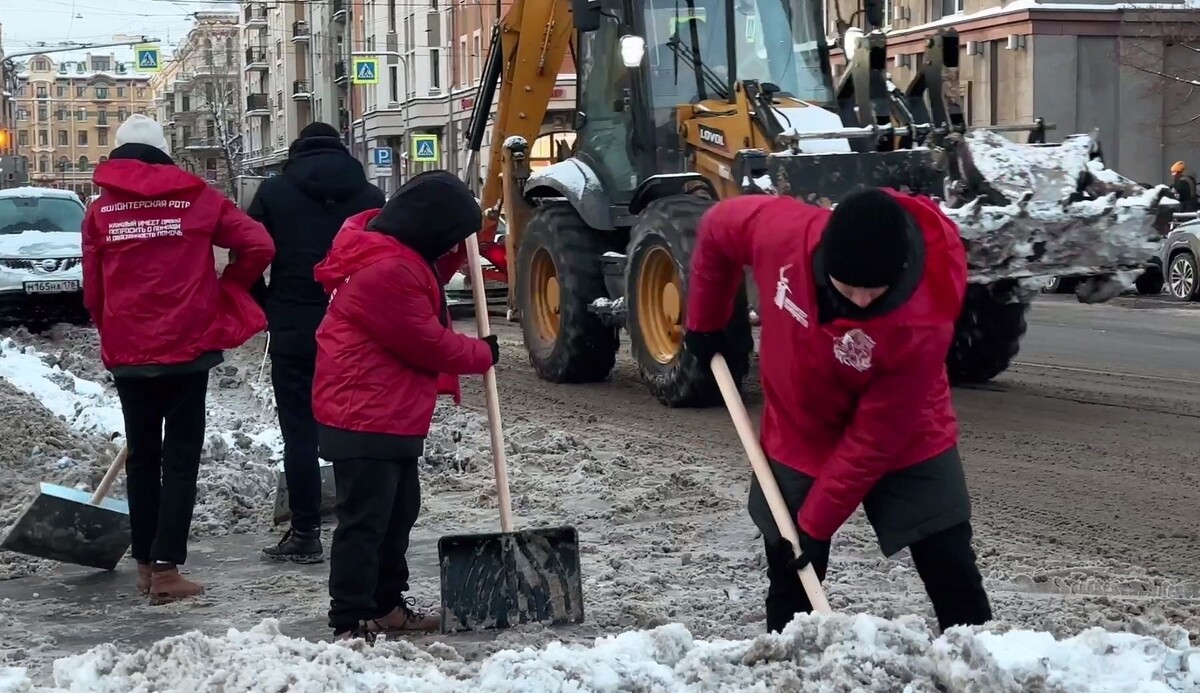 Более тысячи активистов «Волонтёрской Роты» и «Команды губернатора» совместно с «Молодёжным Крылом» ВРНС Санкт-Петербурга приняли участие в расчистке снега в Центральном районе.