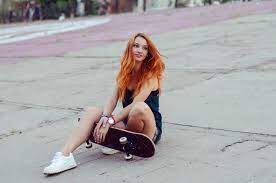 Стройная скейтерша без лишней жировой прослойки (так называемое сухое тело), у которой явно выражены проработанные мышцы через кожу (виден рельеф). У постоянно катающейся скейтбордистки изящные изгибы и небольшой обхват плеч, бедер – из-за постоянной работы. А также, разумеется, ярко выраженные мышцы ягодиц. Итог – красивое тело без каких-либо изъянов у активной и весёлой девушки. Которая едет на скейтборде по набережной, радуется своей тренировке и улыбается всем прохожим и, без сомнения, заряжает всех позитивом.