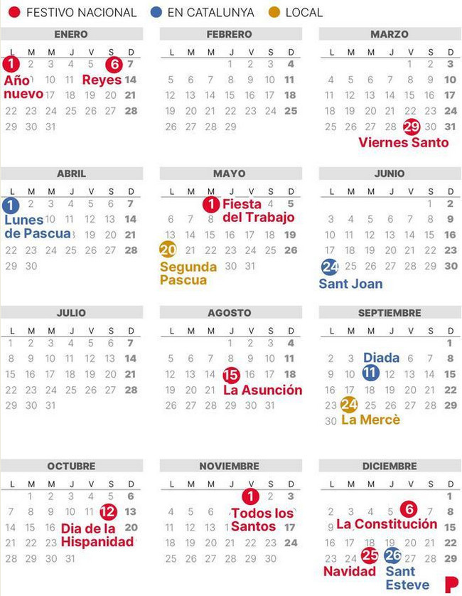 Правительство Каталонии официально опубликовало календарь праздничных дней на 2025 год для автономного сообщества. В этот календарь включены официальные нерабочие дни, к которым затем добавляются местные праздники, определяемые каждым муниципалитетом в соответствии с Положением о трудовых отношениях.