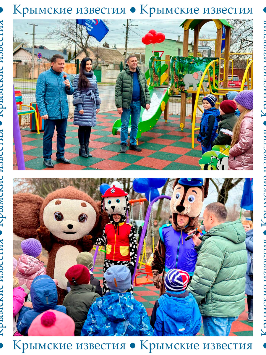 Больше тысячи новых детских площадок установили в Крыму за 10 лет. Речь идёт не только крупных сооружениях в городах республики, но и о небольших площадках в сёлах. Об этом «Крымским известиям» сообщили в пресс-службе Госсовета РК. Накануне в Симферополе стало на одну детскую площадку больше. Новое место для досуга ребят появилось в Центральном районе города – на улице Зенитной, сообщила председатель комитета ГС РК по промышленности, торговле и предпринимательству Оксана Доброрез. Крымские известия. Больше новостей Вконтакте | Одноклассники | Telegram