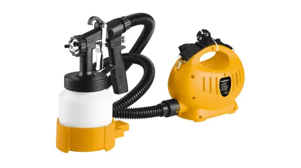 Нельзя обойти вниманием Berger BG1413. Электрический распылитель краски функционирует на основе воздушного распыления, обеспечивая возможность точной и равномерной подачи материала. Его мощность составляет 550 Вт, а емкость резервуара - 1,3 литра. Устройство поддерживает работу с материалами, вязкость которых достигает 100 дин⋅сек/см².