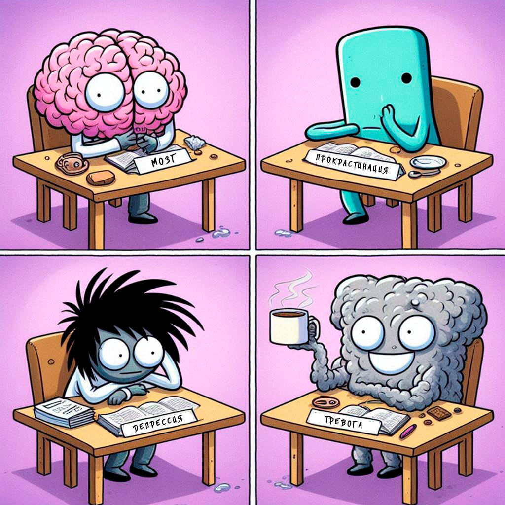 Мозг: Так, коллеги, полтора месяца осталось до конца года. Что по целям? Какие у нас достижения? Прокрастинация: Как минимум не курили ничего забористого в этом году. Мозг: Мы и не курили забористое никогда. Депрессия: Чего не скажешь про пили , конечно. Прокрастинация: Мы это, медитировали. Депрессия: Медитировали мы. Вибрации повышали. Тревога: 5 Дней!!! А подписку, подписку-то мы платим весь год за приложение медитации!!! И еще рассрочку за курс по вибрациям!!!! Мозг: Мы планировали же что-то в январе. Был же у нас этот... Депрессия: Ежедневник Прокрастинация: Семь ежедневников у нас было... Тревога: Семь? Ежедневников ???? Мозг: Так, ходить в зал, похудеть, выучить английский, вести блог. Мы что-то из этого сделали? Прокрастинация: Ни Ху... Мозг: Замолчи, не надо.... Тревога: У меня прям паничка..., что мы ничего не делаем! Прокрастинация: Предлагаю зафиксировать, что мы все-таки не курили ничего забористого.