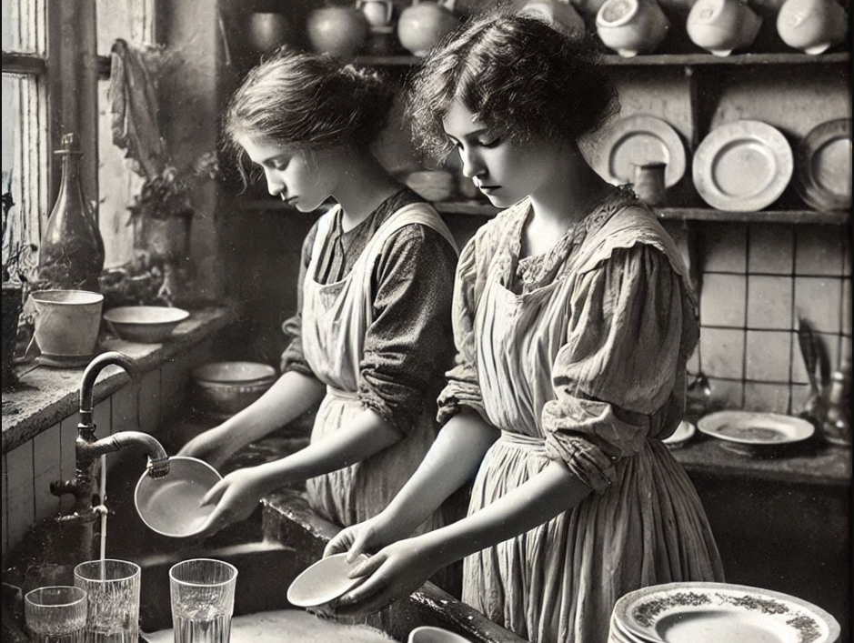 Настя смотрела на груду тарелок, которые нужно было перемыть. Она быстро сняла кофту, повесила её на гвоздь, торчавший из стены и надела фартук, только что оставленный женщиной. Кира последовала её примеру, но второго фартука не оказалось и она встала к раковине с посудой.