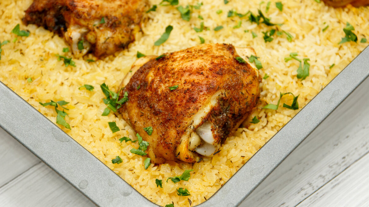 С таким блюдом и плов не нужен. Рис, пропитанный соками курицы и пряностями, получается рассыпчатым и невероятно вкусным. Простота приготовления и минимум грязной посуды – это ещё один приятный бонус этого рецепта.