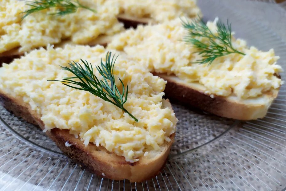Ингредиенты Сыр 200 г Сливочное масло 60 г Горчица 1 чайная ложка Яичный желток 2 штуки Белый хлеб 200 г 1.Подготовить ингредиенты. 2.Сварить яйца вкрутую. 3.Отделить желтки от белков, понадобятся только желтки. 4.Сыр натереть на мелкой терке. 5.Добавить к сыру измельченный желток. 6.Добавить размягченное сливочное масло. 7.Добавить 1 чайную ложку горчицы. 8.Хорошо растереть все в однородную массу. 9.Добавить соль по вкусу. 10.Белый хлеб подрумянить на сухой сковороде. 11.Намазать сырную массу на теплый хлеб, выложить на блюдо и украсить веточкой зелени. Любите читать Дзен «Еды»? Расскажите свое мнение о материале в комментариях и ставьте свои лайки!