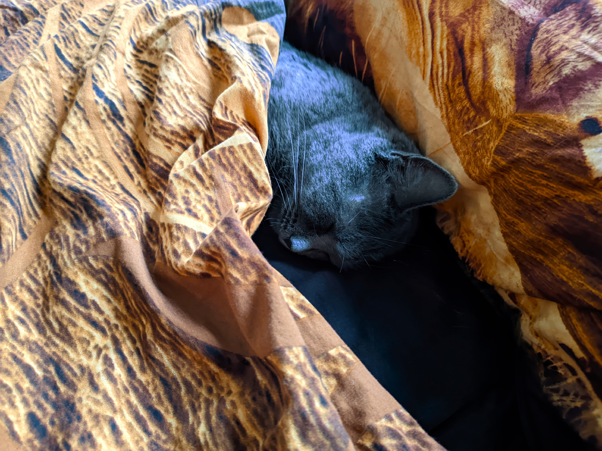В полдень встал, позавтракали. На нашей кровати только Дымка осталась дремать, будить не стали.
