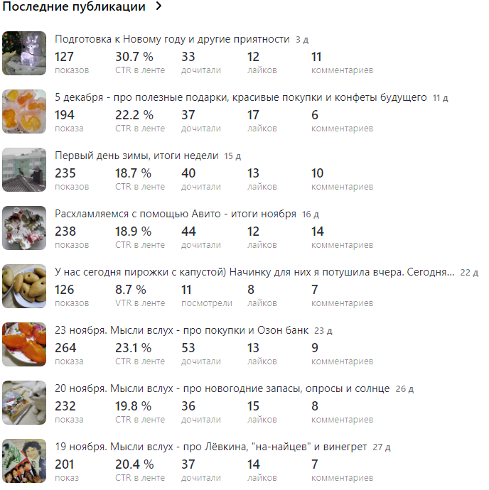 Привет, друзья! Сегодня про мое "хозяйство" на Дзене. Надеюсь, что авторы каналов, которые на меня подписаны, помогут разобраться мне с моей проблемой. Я уже писала, что в последнее время мне дают ОООЧень мало показов. Ну прямо вообще... Но думала, что это всеобщая тенденция, на всех показов не хватает, каналов много и т.д. Но недавно я начала работать с нашим корпоративным каналом на Дзене. На нем мало подписчиков, несколько месяцев он был заброшен. Мы начали на нем выкладывать разные виды материалов, чтобы потихоньку его раскачать. Сначала не было ни показов, ни просмотров. Что вполне ожидаемо. А потом я увидела, что алгоритмы Дзена работают как раньше! На канале, где меньше двухсот подписчиков, зашедшая статья получила почти 15 тысяч показов за неделю, и я понимаю, что это не предел. Показатели у статьи вполне рядовые, CTR меньше 10%. Но ее крутят, товарищи! Да и на другие публикации Дзен тоже подливает показы. И я сделала вывод, что Дзен сломался только у меня... Вот показатели с