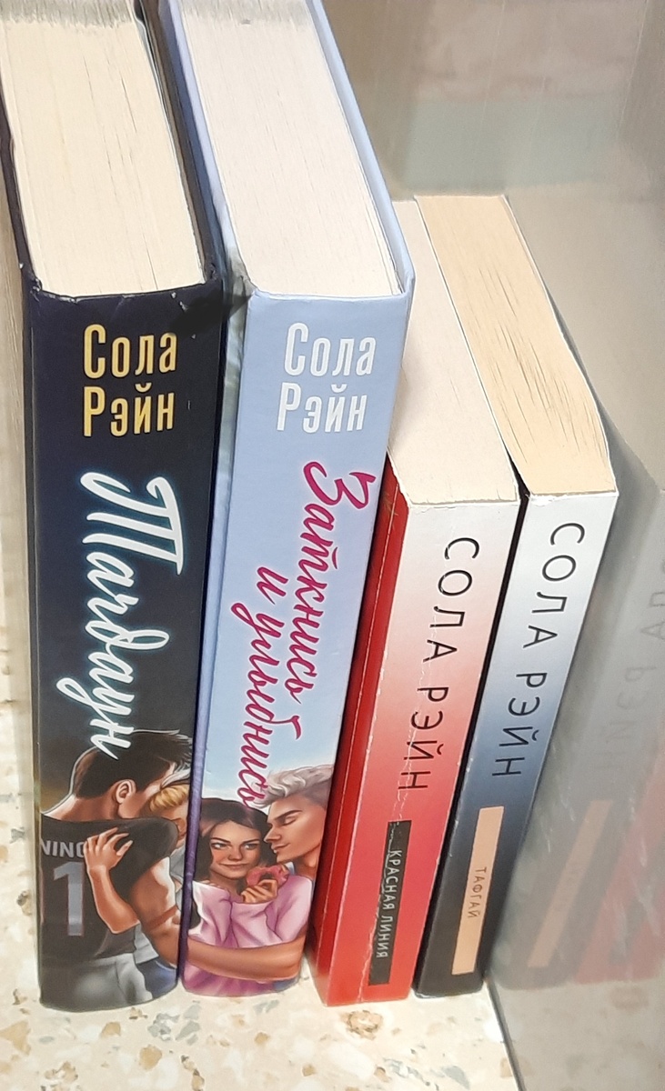 Приветик 👋 |・ω・) Сегодня у нас распоковочка книг =) С книгами только так и бывает .У меня все книги Солы Рейн . Как-так получилось предыстория 📚 . Просматривала книги на просторах Авито , и наткнулась на Тачдаун (тверда обложка ) -понравилось по описанию 👍 , (кто читал ?) , продавец продавал от двух книг только , ну я подумала возьму ещё одну книгу Тафгай 😅 . Оказывается Тафгай это была только вторая часть диалогии 🤪. А дальше следом и Заткнись и улыбнись в твердой , и Красная линия продолжение -1часть диалогии . С учетом , что я была незнакома с этим автором , а было уже 4 книги - главное , что мне в итоге понравилось 😊. Начнем по порядочку распоковочка : ➖ Тачдаун и Тафгай - хорошо были упакованы 👍 ) пупырчатая на несколько раз и сверху скотчем). 1) Тафгай - мягкая обложка , листы серые , но прям состояние мне нравится миниатюрная , без помятостей и выделений ᕙ(⇀‸↼‶)ᕗ 2) Тачдаун - твердая обложка , оформление шикарное , приятно держать такое издание , хоть немного старое уже