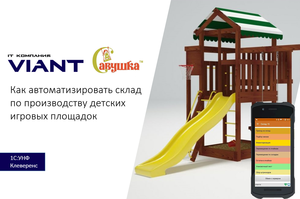 «Савушка» – одна из ведущих отечественных компаний, выпускающих детские игровые площадки. Начав с небольшого цеха, предприятие выросло до мощной фабрики. В её линейке уже более 400 моделей спортивных комплексов, которые поставляются в регионы России и страны ближнего зарубежья. Компания использовала для учета товаров комбинацию 1С:УНФ и ручного учета. Такой подход привел к ряду серьезных проблем: Для решения этих проблем было принято решение о внедрении системы автоматизированного учета на основе штрихкодирования и терминалов сбора данных (ТСД). Выбор пал на: